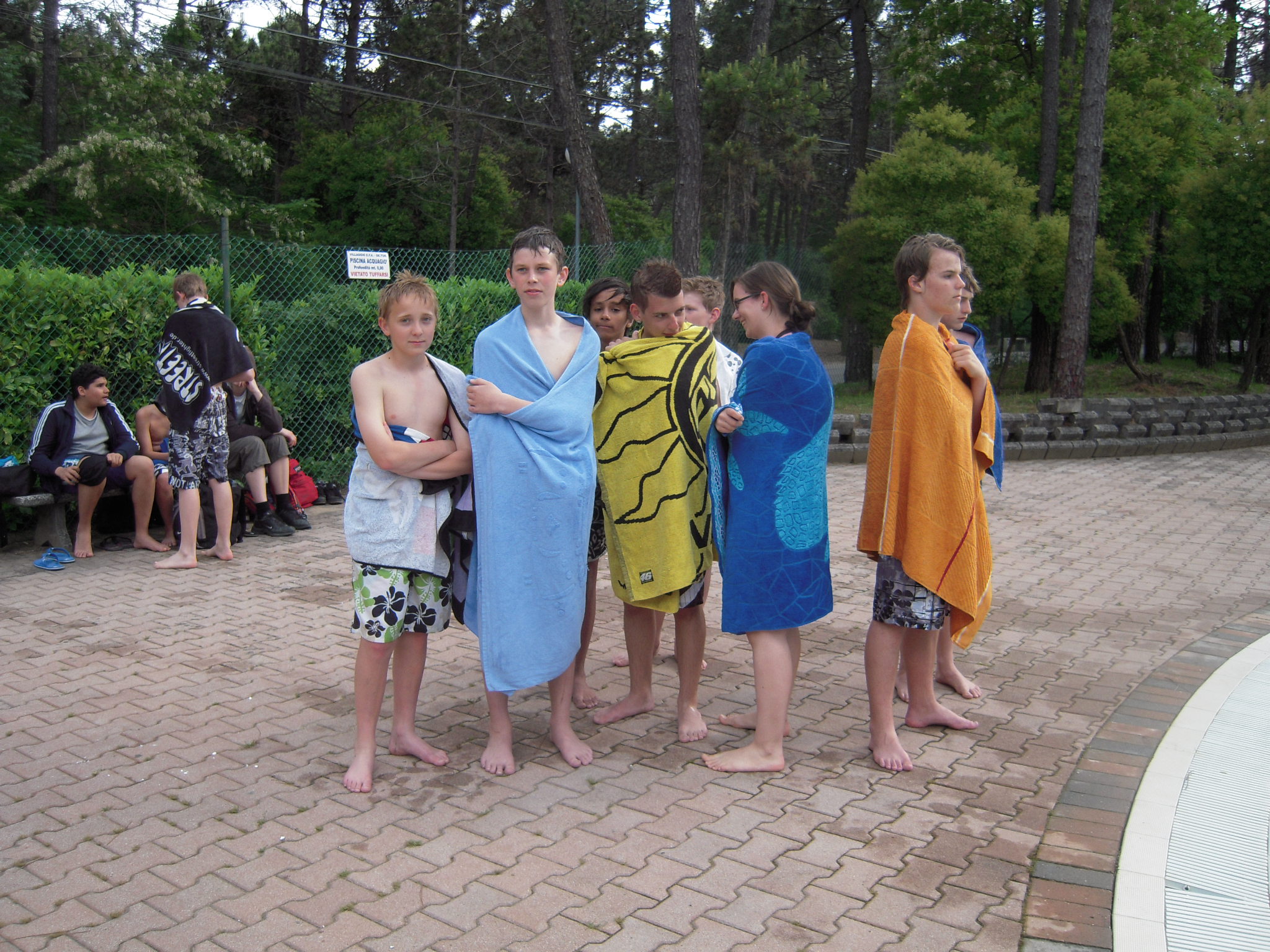 Nach eiinem wohlschmeckenden Mittagessen mit Calamari fritti, Brathuhn, Nudeln, grünen Bohnen, Salat und Marillenkuchen begann unsere erster Sprachkurs, bei dem wir die ersten Worte auf italienisch kennen lernten. Danach vergnügten wir uns im Aquapark der GE.TUR-Anlage an verschiedensten Rutschen.