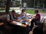 Beim Mittagessen stärkten wir uns mit Naturschnitzel, Calamari, Nudeln, Zucchini, Salat und Eis.