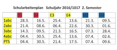 Schularbeitenplan - Schuljahr 2016/17 II. Semester